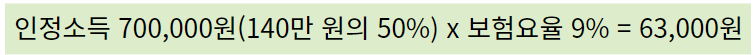 환산한 금액의 50%에 해당하는 소득을 기준으로 산출됩니다.