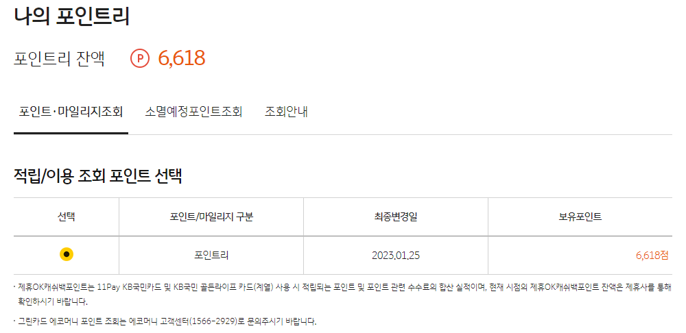 KB카드, 톡톡 my point 카드 사용 후기 (포인트리 캐쉬백)